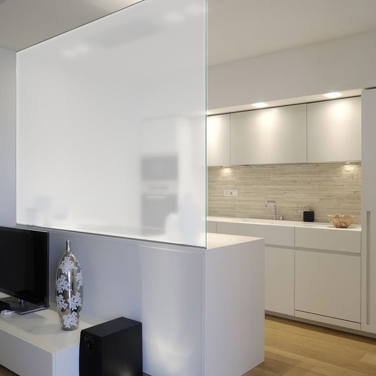 Стекло с матовкой мягко рассеивает свет и ограничивает обзор внутри помещения. После обработки поверхность полотна становится шагреневой с нежным молочным оттенком. Процедура проводится в пескоструйном аппарате. Гранулы песка воздействуют на стекло под давлением 3 атм и создают эффект «шероховатости».