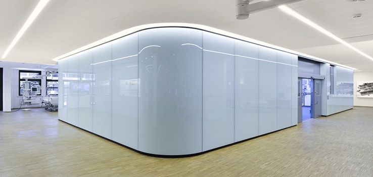 Стеклянные изделия закругленной формы выгодно смотрятся в современных или нестандартных интерьерах. Полотну задается нужный радиус изгиба посредством термической обработки. В разогретой свыше 600°С печи материал выгибается по специально изготовленной металлической форме, затем охлаждается.