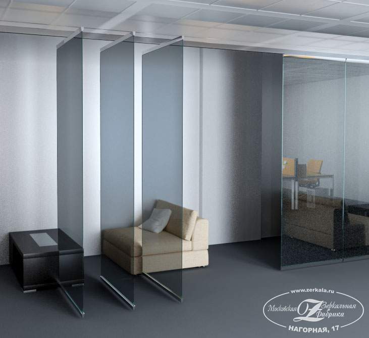 Специалисты МЗФ изготавливают различные конструктивы перегородок для зонирования: цельностеклянные, трансформируемые, мобильные, с системой Dorma, раздвижные. Полотна на заказ точно подогнаны по габаритам, учитывают неровные углы и рельефы стены.